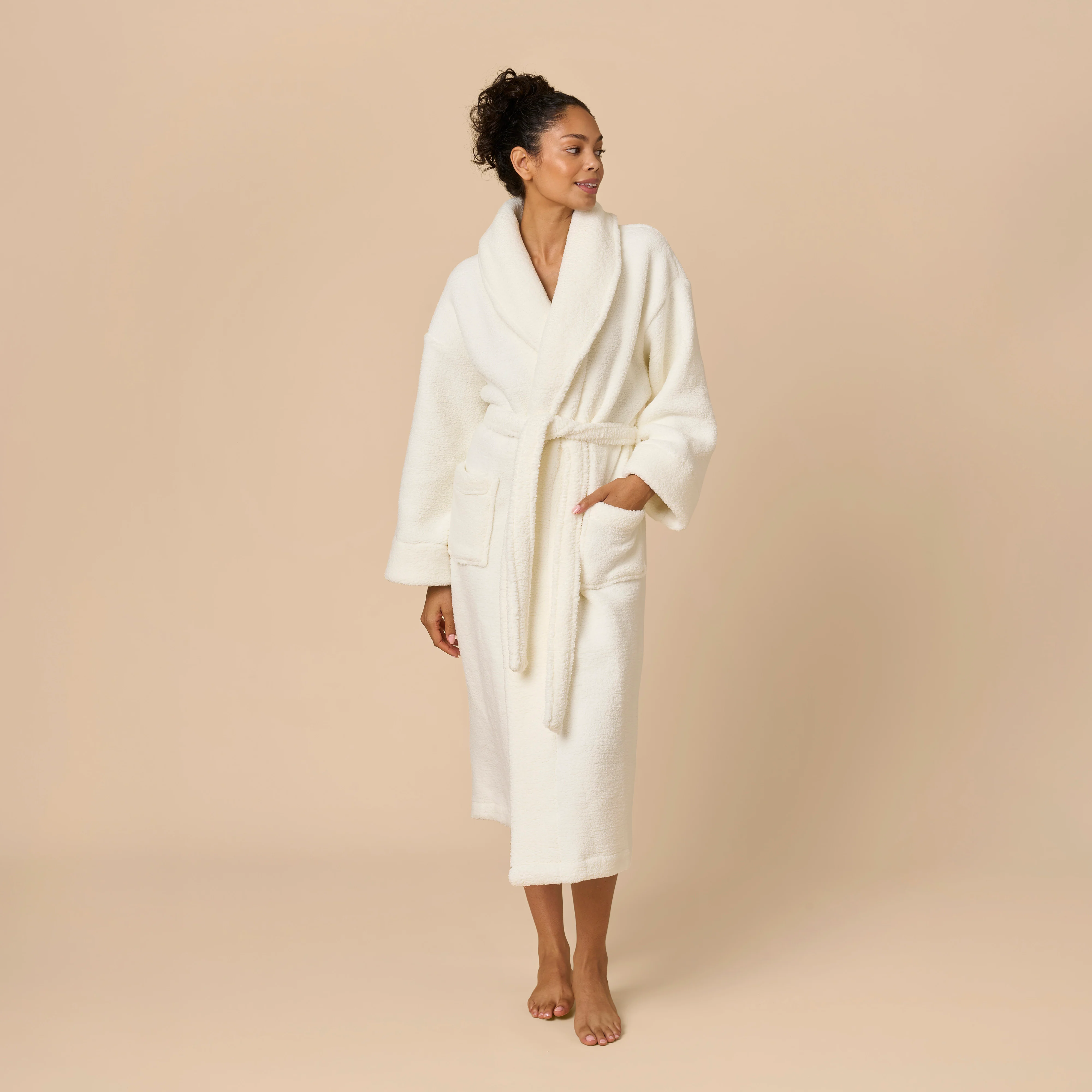 Me-time is rare. Like blue-moon-rare. So make the most of it in this luxuriously soft Teddy Robe, now available in new Coconut Cream. Thick, but lightweight with an easy-tie belt and stylishly oversized shawl collar, itâs designed for maximum âoff the clockâ comfort.